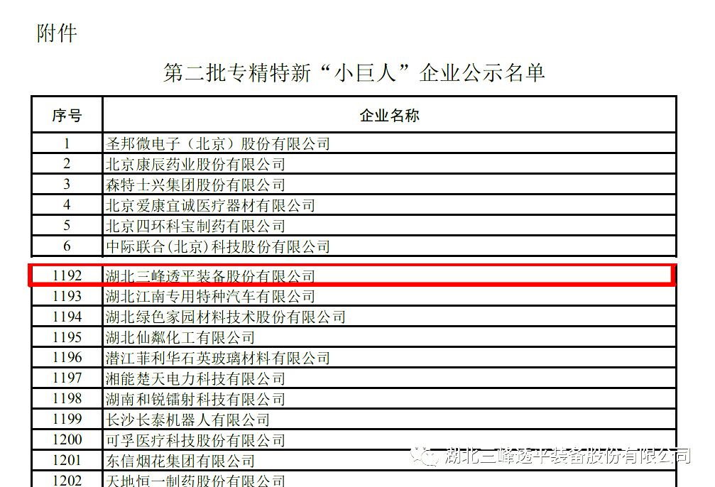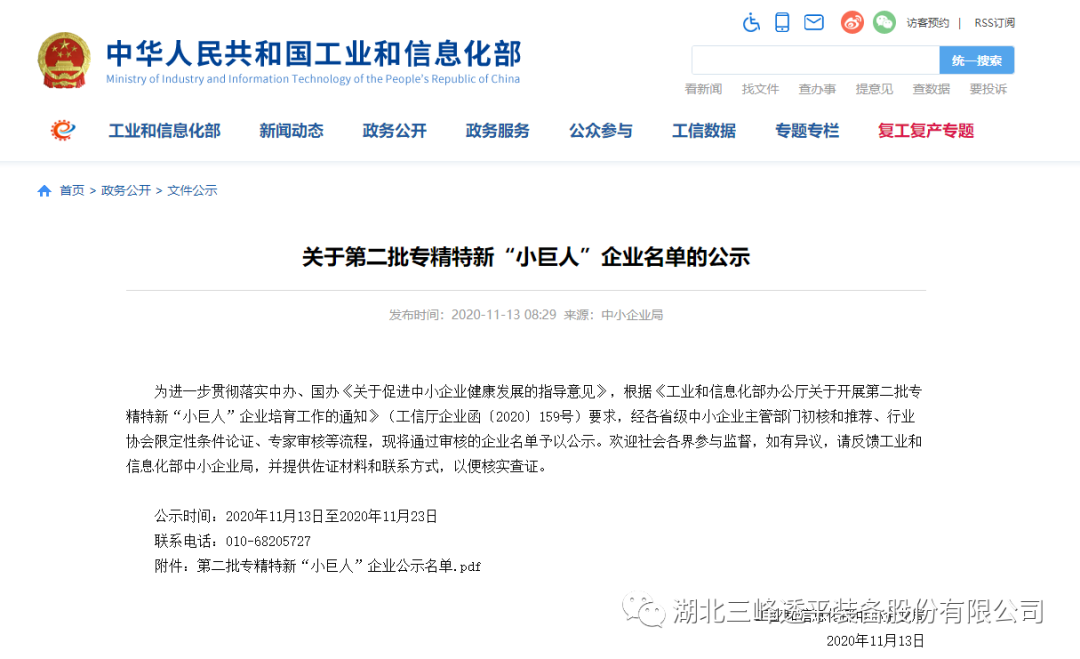 2020年7月,我公司根據(jù)《工業(yè)和信息化部辦公廳關(guān)于開(kāi)展第二批專(zhuān)精特新“小巨人”企業(yè)培育工作的通知》(工信廳企業(yè)函〔2020〕159號(hào))要求,申報(bào)了第二批專(zhuān)精特新“小巨人”企業(yè),經(jīng)過(guò)省級(jí)中小企業(yè)主管部門(mén)初核和推薦、行業(yè)協(xié)會(huì)限定性條件論證、專(zhuān)家審核、企業(yè)名單公示等流程,公司憑借顯著的創(chuàng)新、研發(fā)、生產(chǎn)能力獲得第二批專(zhuān)精特新“小巨人”企業(yè)稱(chēng)號(hào)。